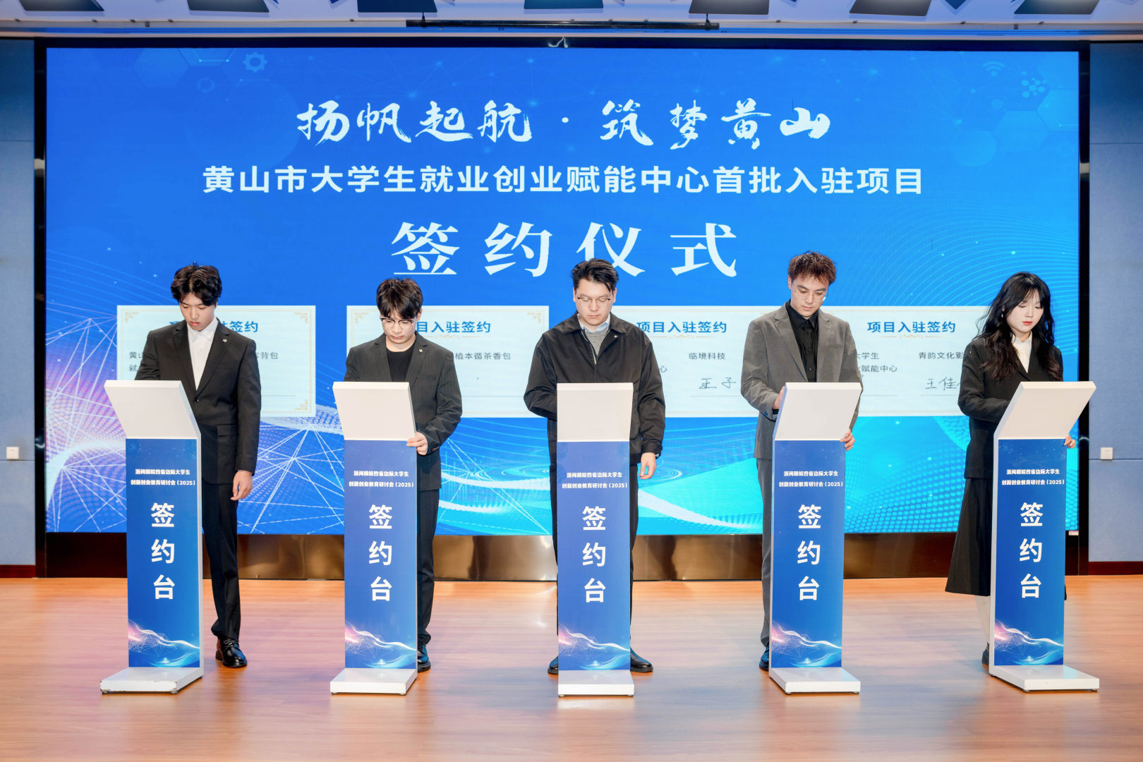 浙闽赣皖四省边际高校代表与黄山市大学生就业创业赋能中心签署战略合作框架协议,标志着四省边际高校与地方就业创业服务平台的联动合作迈入制度化、常态化新阶段;同时,黄山市大学生就业创业赋能中心首批入驻项目完成集中签约,一批优质创新创业项目正式落地,为区域双创生态培育注入了鲜活动能。