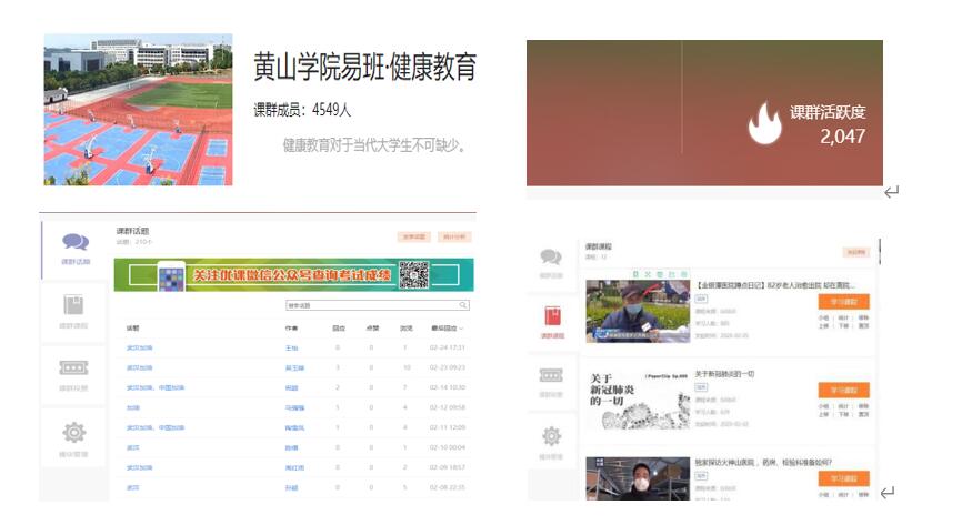 2月2日开展“易班优课—MK体育网页版登录入口.MK(中国)易班·健康教育”,共发布学习课程12项、总学习人数4549人、课群话题 210个、活跃度达2047。优课课程的创建秉持当代大学生不可缺少的健康教育信念,向同学们传达救护一线的实时情况,让同学们充分了解疫情相关知识,做到在家不出门,为国家做贡献,用行动抗击疫情。