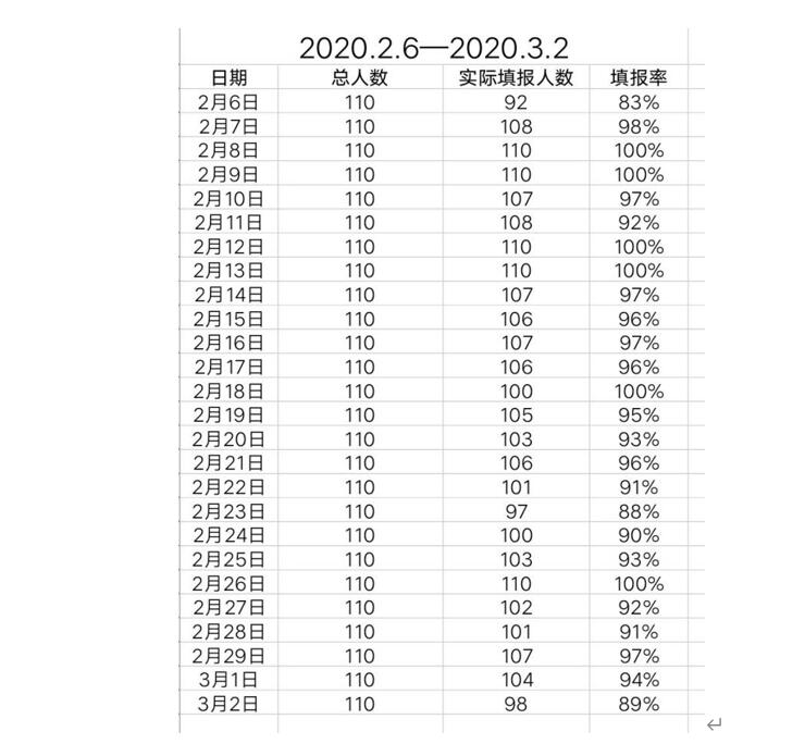 为全面掌握我校学生思想动态和健康情况, 2月6日学生处联合超星学习通进行线上签到与健康申报。后续学生处又通过钉钉平台,创新健康申报模式,对学生健康情况把握更为准确。在连续一个多月的奋战中,我校学工助理通过QQ、电话等方式主动对接未填报学生名单,及时传达反馈各类问题,发挥桥梁作用,跟踪重点学生,尽可能洞悉每位学生的健康情况。经过全体师生的不断努力,每日填报率逐步上升,呈现良好态势。对此,学生处负责人表示,通过连续申报,不仅了解了我校学生的健康情况,及时统计出我校学生的地域分布情况,还为学校布置有关决策及学生返校工作提供了有效的数据依据和保障。