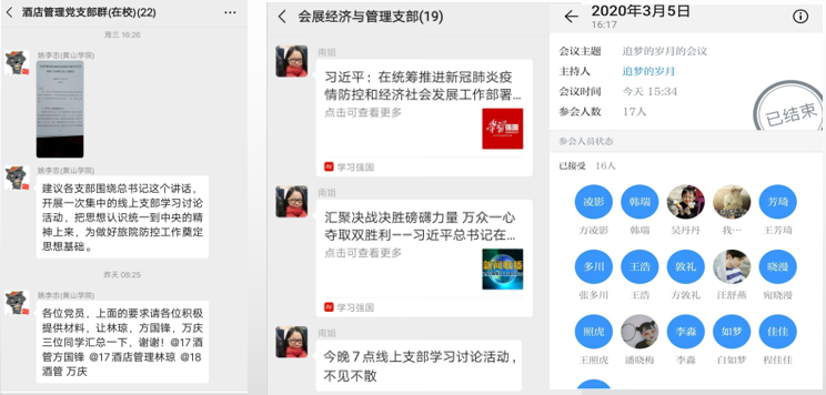 3月5-6日,该院各基层党支部围绕习近平总书记讲话,分别采用线上微信视频会、微信群,钉钉、“学习强国”网络平台等多种形式开展了一次集中的线上支部学习讨论活动,全文学习了习近平总书记重要讲话,并分享了党员学习心得,交流了学习体会,确保党组织、党员学习全覆盖。