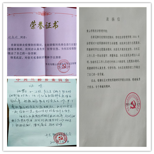 疫情就是责任,防控就是命令。在新型冠状病毒疫情防控时期,经济管理学院多名学生党员积极响应组织号召,主动投入家乡疫情防控志愿服务工作,他们的努力与贡献受到当地疫情防疫单位的肯定与表彰。