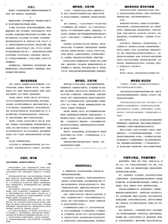 活动内容包括“疫”去春来云演讲比赛、“话雷锋精神,颂助人榜样”主题征文活动、“缅怀英烈,文思今朝”主题征文活动等。同学们的投稿内容形式丰富,或以朴实的文字作品书写亲人、朋友冲锋一线的感人故事,或以满怀激情的诗词作品传递战“疫”胜利的信心。视频作品融合了许多同学的画面,或是身处疫区的同学们向学校报到一切安好,或是纷纷为武汉应援、为中国应援,充分展现了我校学子对打赢这场疫情防控的人民战争、总体战、阻击战的信心和决心。