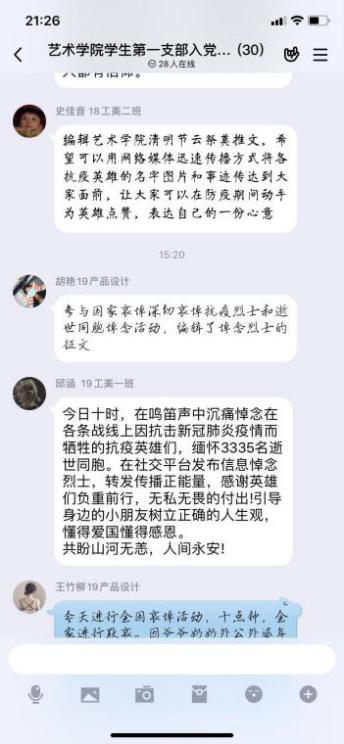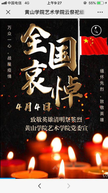 为表达对抗击新冠肺炎疫情斗争牺牲烈士和逝世同胞的深切哀悼,4月4日,艺术学院师生相继以多种形式参加全国哀悼日活动。