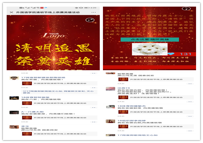 适逢清明,追思悠悠。在当前疫情防控的大环境之下,为祭奠抗击新冠肺炎疫情斗争牺牲烈士和逝世同胞、缅怀逝者并致以深切哀悼,外国语学院4月4日举办清明节云祭奠活动。
