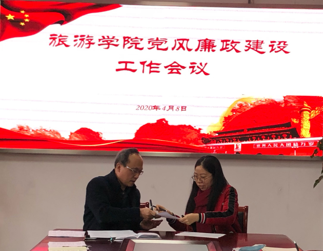 4月8日下午,旅游学院在文思楼旅游学院会议室召开2020年党风廉政建设工作会议。学院党委委员,科级以上干部,党支部书记,教研室主任,实验实训中心主任、副主任,分工会主席参加了会议。会议由该院党委书记陶卫平主持。