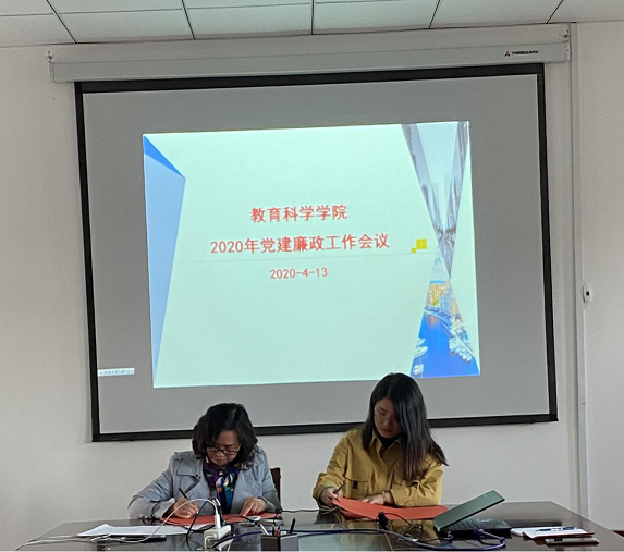 4月13日下午,教育科学学院在文渊楼1307会议室召开2020年党风廉政建设工作会议。该院党政领导、科级干部、各党支部书记、各教研室主任、全体党员老师参加了会议。会议由该院党总支副书记、院长徐俊华主持。