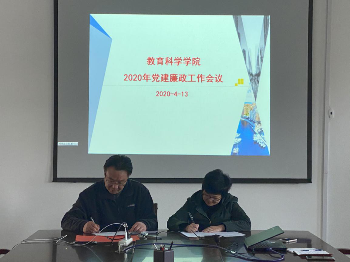 会议最后举行了2020年党风廉政建设责任书签订仪式,余南宁、徐俊华与学院党总支副书记、科级干部、支部书记分别签订了党风廉政责任书。