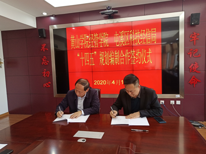 4月15日上午,经济管理学院院长赵士德和市场营销教研室主任方亮一行5人赴屯溪区科技经济信息化局签订“十四五”规划编制合作协议。该局党组书记、局长吴顺建和副局长刘毅、魏志刚、方家明热情接待赵士德一行。