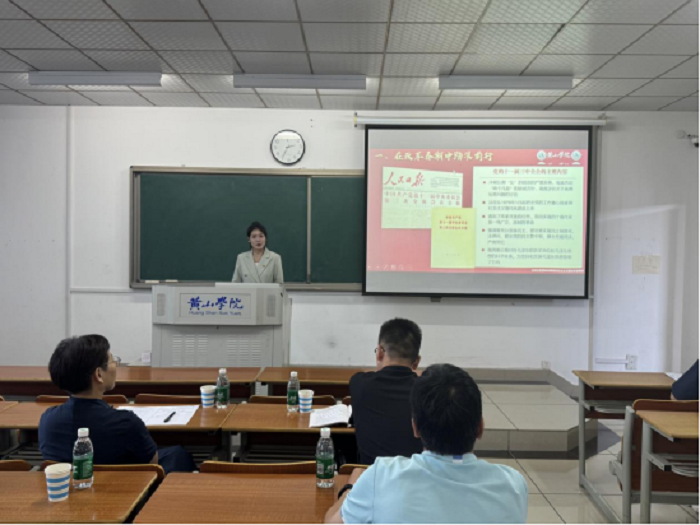 决赛邀请黄山炎培职业学校校长秦岭、黄山市教育科学研究院院长江立新、黄山职业技术学院副处长汪金杰和我校学生处处长王佩玲、马克思主义学院党总支书记刘春安、文学院潘定武教授、马克思主义学院冯剑辉教授等担任决赛评委。马克思主义学院副院长(主持工作)刘芳正主持活动。