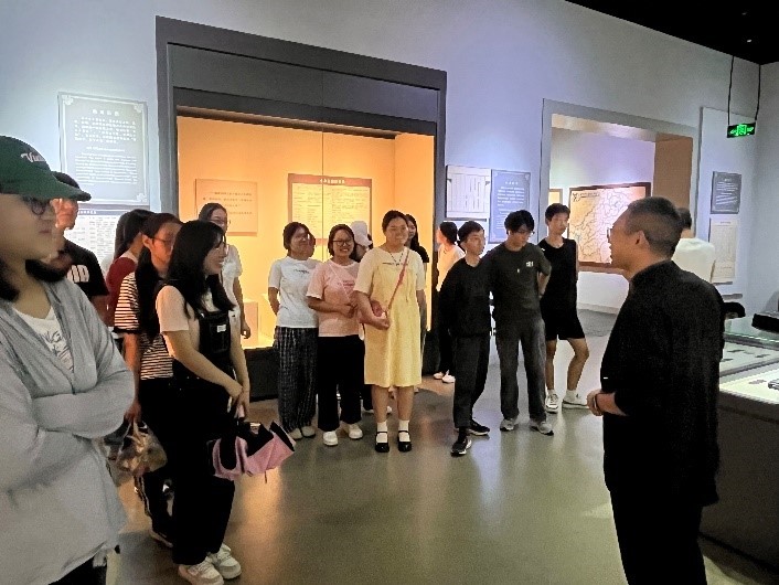 本次活动包括参观、授课和讨论三个环节。在安徽中国徽州文化博物馆,讲解员带领师生沉浸式感受了博物馆丰富的陈列展品及其背后的文化故事。在博物馆基本陈列展示区域,师生通过不同专题板块的陈列展学习、感受到了徽州优秀的人文历史和精神价值。在徽州教育陈列展区,学生们了解到明中叶以后徽州新安医学和科技的大发展;在徽州艺术陈列展区,学生们被徽派版画、篆刻艺术等徽州艺术所震撼;在徽州建筑陈列展区,学生们沉浸于反映徽州山地特征、地域美饰倾向的徽州建筑,惊叹于徽州村落布局和徽派民居的地域之美;在天下徽商陈列展区,学生们被徽商敢为天下先、吃苦耐劳、开拓创新的精神所感染;在走进徽州陈列展区,学生们了解了徽州“一府六县”的形成以及徽文化发展的基本脉络,获得了对徽州历史发展的总体概念。