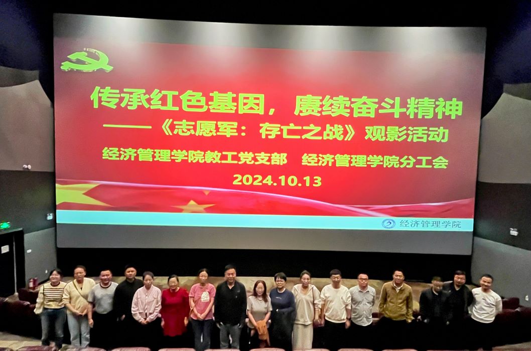 为加强红色文化教育,引导我校教师不断发扬红色革命精神,10月13日,经济管理学院教工党支部联合学院分工会组织了一场别开生面的观影活动,以“传承红色基因,赓续奋斗精神”为主题,观看了电影《志愿军:存亡之战》。该片聚焦铁原阻击战,深情再现了中国人民志愿军第63军2.5万将士与近5万“联合国军”在铁原战场上激战12昼夜的英勇事迹,展现了志愿军将士们浴血奋战、构筑冲不破的铁长城的壮丽画卷。