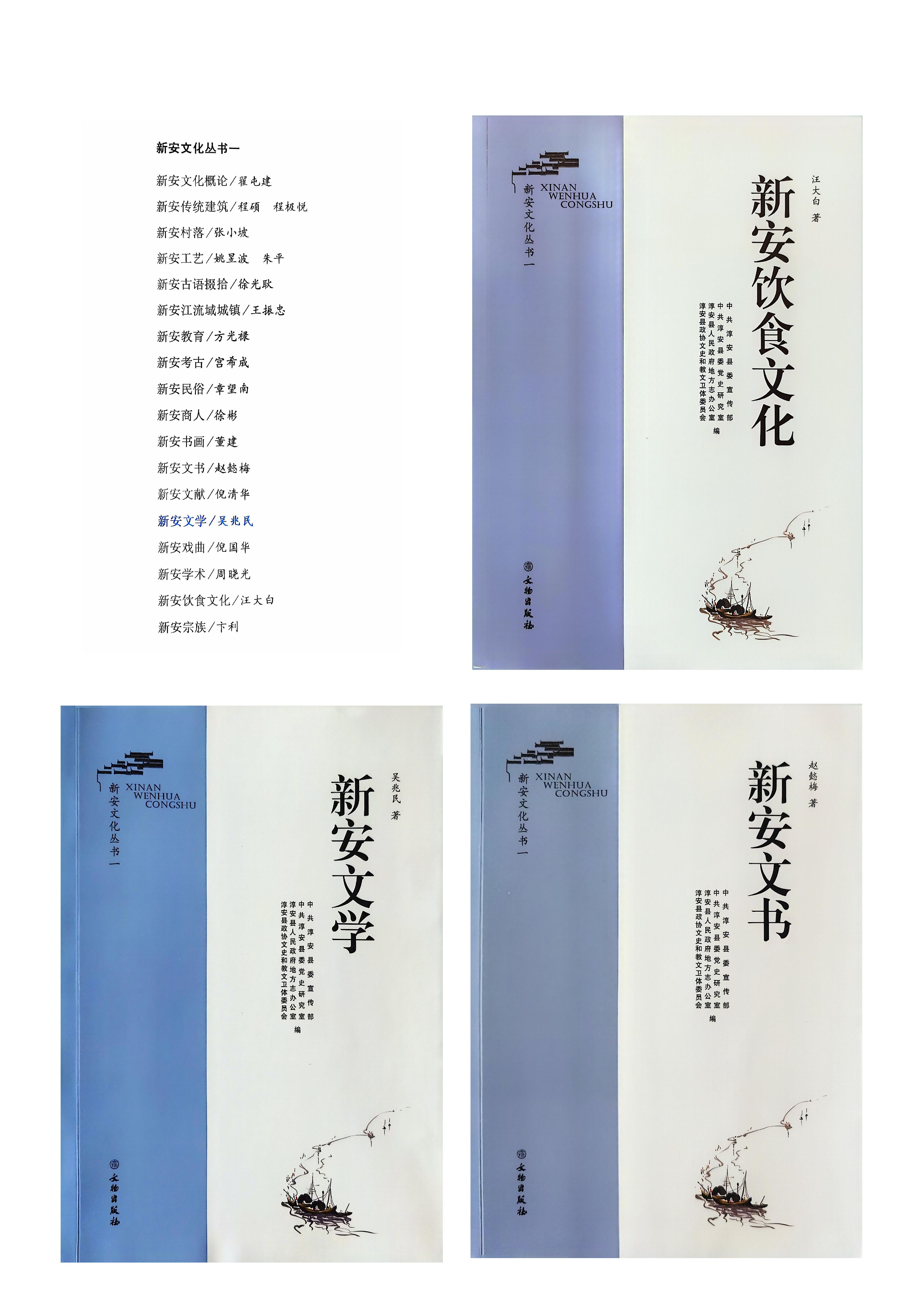 其中我校汪大白著《新安饮食文化》、吴兆民著《新安文学》、赵懿梅著《新安文书》,在既有研究成果基础上,进一步对体系建构、地域特色以及一体化问题展开了研究和论述。这些著作的撰写得到学校相关部门的协助和支持,《新安文书》还对我校文书整理的经验和方法进行了专题论述。