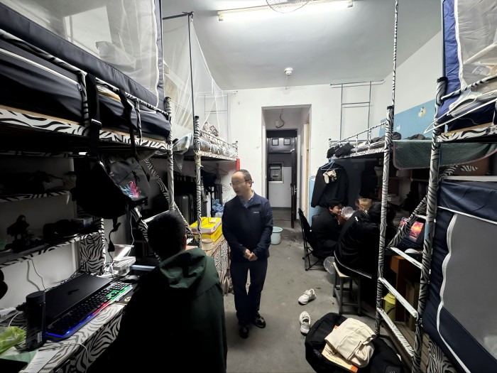 走访过程中,每到一间宿舍,都仔细查看宿舍的卫生状况、用电安全以及消防设施的配置情况,重点检查了学生宿舍电器使用状况,提醒同学们冬季来临,更要注意用电安全,严禁使用违规电器。对于学生在日常生活中的困难和需求,也耐心询问并做了记录。张爱民在走访中表示:学生宿舍是同学们日常生活和学习的重要场所,其安全状况直接关系到学生的身心健康和学院的稳定发展。我们此次深入宿舍走访,就是要实地了解同学们在宿舍学习、生活的真实情况,确保大家在安全、舒适的环境中健康成长。