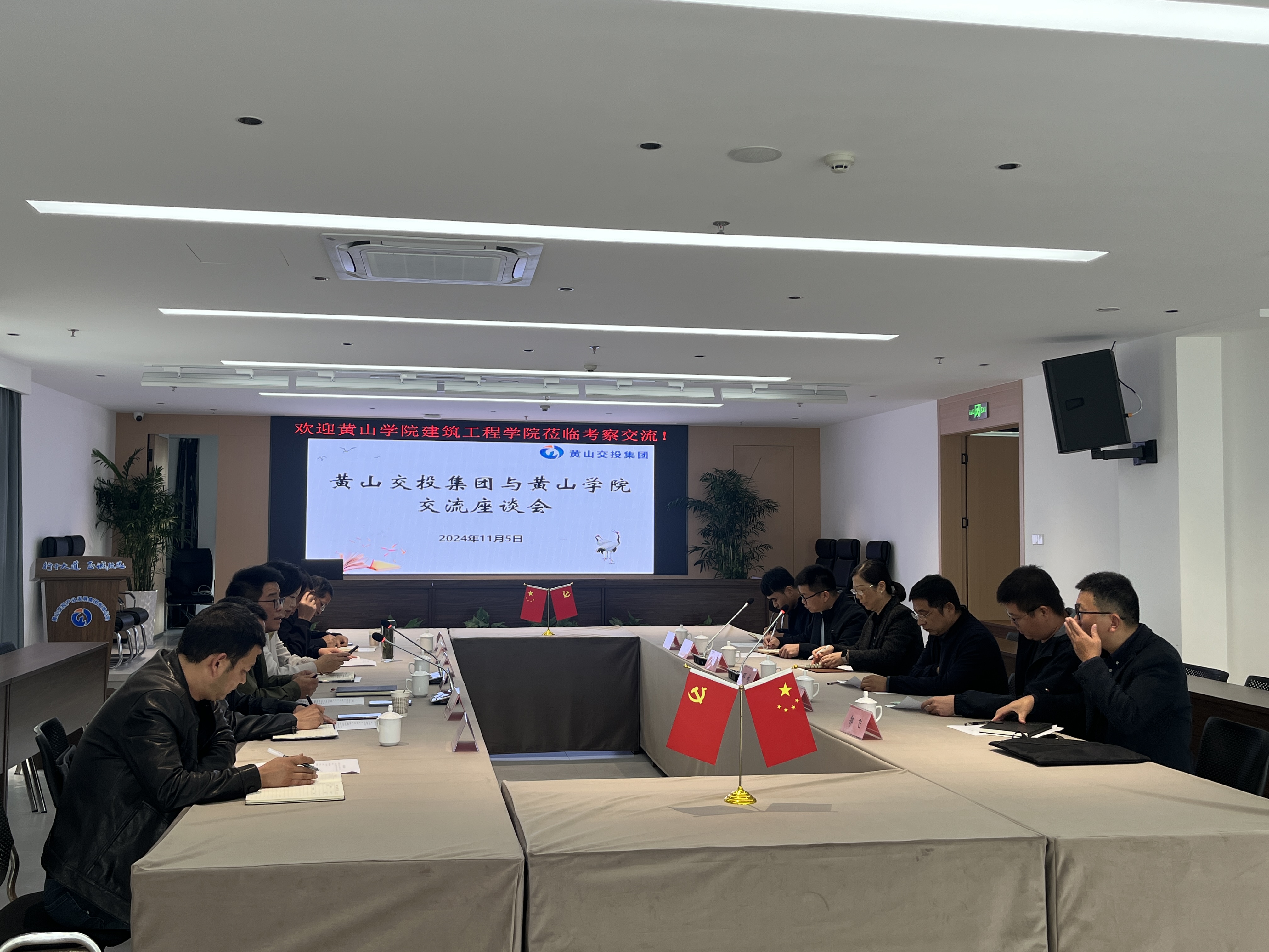 为进一步加强校企合作、产教融合和科教融汇,深度挖掘企业技术需求,助力人才培养共同体建设,积极落实“访企拓岗促就业”方针,11月5日下午,建筑工程学院党委书记邱慧、副院长邓林等一行6人赴黄山交投产业发展集团有限公司进行座谈交流,黄山交投产业发展集团有限公司董事长吴艳玲、副总经理喻海斌以及相关子企业负责人热情接待了该院一行。