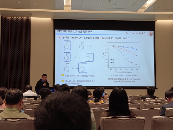 本次大会共设48个分会场,涵盖了新材料、新能源、环境分析与监测、临床诊断、食品药品安全、生物传感、毒物检测、法庭科学、科技期刊发展、实验室人才培养以及实验室数智化管理等多个热点领域。每个分会场围绕不同专题展开,呈现了大量的学术研究和应用成果。我校化学化工学院孙光映博士应邀参加该会议并在第46分会“本草物质科学研究方法与技术”作题为“低共熔溶剂改善酸性化合物制备容量及其机理研究”口头报告。该工作由2022级制药工程专业学生章慧同学依托绿色化工新材料黄山市技术创新中心历时一年多时间完成,从理论上深刻揭示了低共熔溶剂改善酸性化合物分离过程的机理,为该类化合物的规模分离纯化提供了全新思路。绿色化工新材料黄山市技术创新中心本科生科研助理何群、吴慧敏、殷盛飞等同学的另一学术成果“基于异构化性质的“自切换”低温液相色谱纯化方法研究”作了墙报展示。相关学术成果得到了与会专家的高度认可。展示了我校师生的科研创新能力。与会期间,孙光映博士还与中国科学院及行业头部企业多位专家介绍学校学科发展和人才培养情况,就后续合作展开了多次交流。
