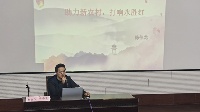 11月13日晚,由校团委组织开展的大学生赋能乡村振兴系列讲座在大学生活动中心四楼团校教室开讲。安徽省第八批乡村振兴选派干部、我校化工学院团委副书记陈伟龙老师应邀作题为“助力新农村 打响永胜红——驻村干部视角下的乡村振兴现状”专题讲座,我校100余名师生聆听讲座。