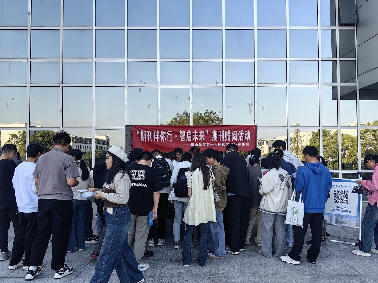 为更好地服务教学科研,推进书香校园建设,11月13日下午,图书馆在逸夫图书馆二楼平台举办“期刊伴你行•智启未来”期刊赠阅活动。活动现场共赠送期刊1500余册,受益师生600余人。