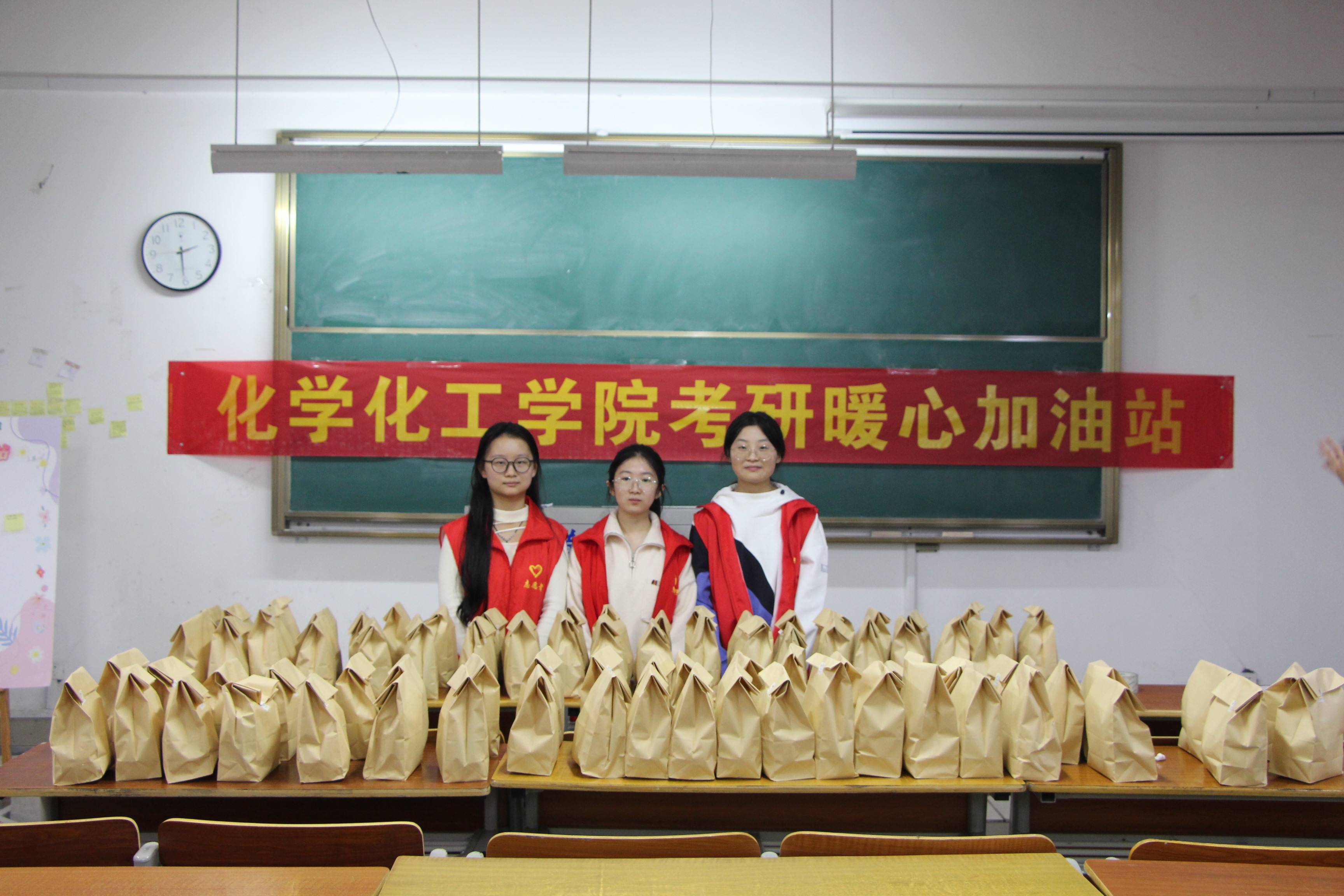 在2025年全国硕士研究生考试冲刺的关键时期,为表达学院对考研学子的关心关怀,帮助学生舒缓备考压力,增强学子迎考信心,化学化工学院于11月16日在逸夫综合楼5106教室举办了考研送温暖慰问活动,学院团委书记陈伟龙、学生会功能性团支部的志愿者们为考研学子发放“加油包”并送上诚挚祝福。