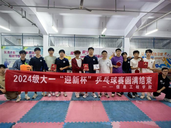 同期进行的还有“迎新杯”乒乓球赛,赛场上,选手们全神贯注,展现出高超的球技。发球时,有的旋转多变,有的快如闪电;接球时,或大力扣杀,或巧妙轻吊。最终,24人工智能班夺得冠军。