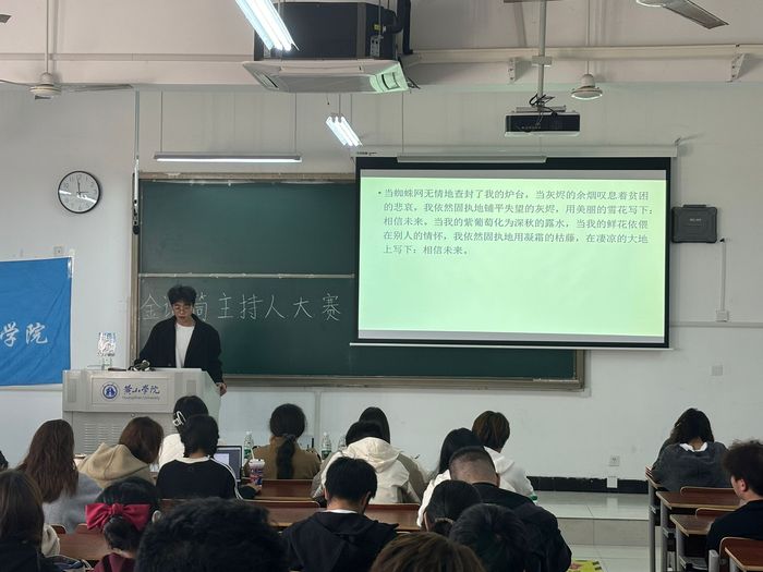 11月10日,信息工程学院举办“金话筒”主持人大赛。比赛分为词语成句、朗诵稿件、模拟主持等多个环节,全面考验选手的专业素养。选手们有的热情洋溢、妙语连珠,有的神情严肃、字正腔圆,有的亲切自然,带动全场气氛。评委们从语言表达、舞台表现、应变能力等多个方面对选手进行了严谨细致的评判。