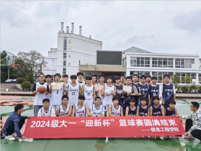 10月,信息工程学院“迎新杯”篮球赛如期举办,运动员们热血拼搏,队员间合作默契交锋,观众们受现场氛围感染,不断传来阵阵欢呼与喝彩。最终,24集成电路班队员凭借出色的团队配合和战术执行获得冠军,24光电信息班和24软件工程一班分别获得了亚军和季军。