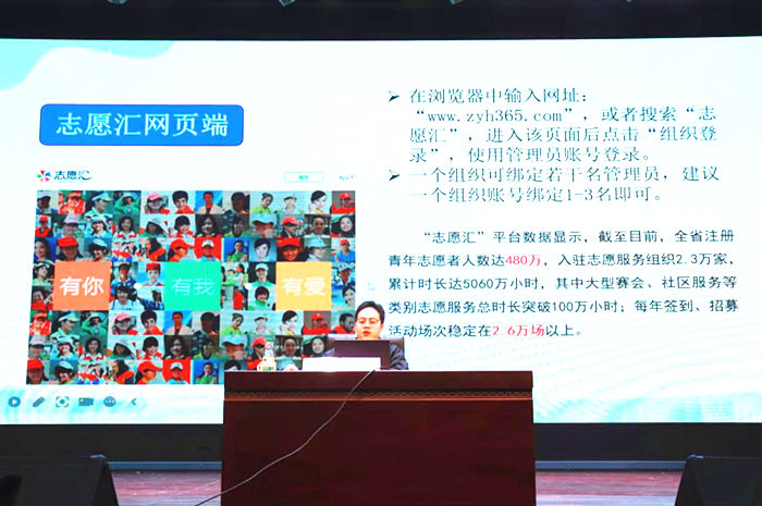 在授课环节,盛鹏老师为学员们带来精彩的第一课,详细介绍志愿汇平台的使用方法和志愿服务的实践技巧,并耐心解答学员们现场提出的问题,确保每一位学员都能熟练掌握相关知识。同时鼓励学员们在活动结束后,及时整理服务过程中的点滴收获与感悟,反思存在的问题与不足,不断提升服务质量。