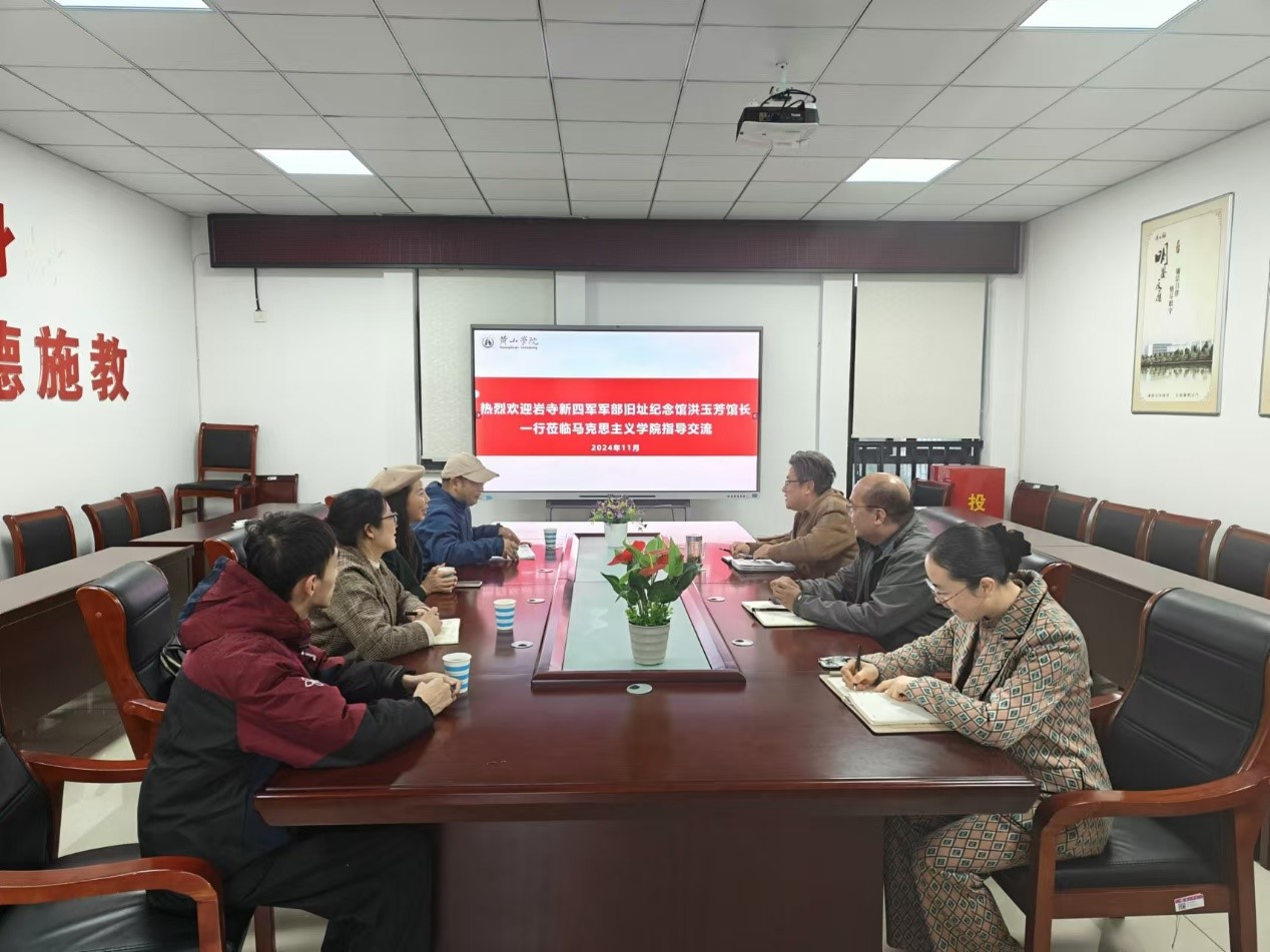 11月25日下午,岩寺新四军军部旧址纪念馆馆长洪玉芳一行到马克思主义学院考察交流。该院党总支书记刘春安、副院长刘芳正参加交流座谈.会议由刘芳正主持。