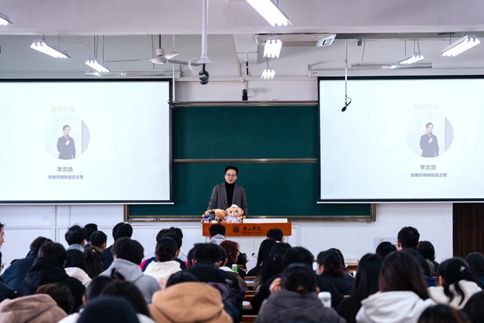 宣讲会上,华为安徽终端业务部体验店主管李文浩介绍了华为的企业文化、发展历程以及未来愿景,同时分享了零售新星、体验店顾问、终端销售代表等多个岗位的招聘需求和发展路径,为学生们提供了就业信息。