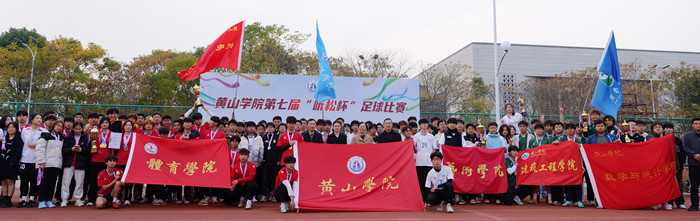 12月4日下午,学校第七届 “听松杯”足球比赛在率水校区第二田径场圆满落幕。经过激烈角逐,历经多轮小组赛和淘汰赛,最终体育学院、机电工程学院、建筑工程学院荣获男子组冠亚季军,生命与环境科学学院、信息工程学院、艺术学院、旅游学院、数学与统计学院荣获男子组第四至八名,教职工队获男子组第三名;体育学院、教育科学学院、旅游学院荣获女子组冠亚季军,生命与环境科学学院、文化与传播学院荣获女子组第四至五名。文学院男队、经济管理学院男队、化学化工学院男队、体育学院女队、生命与环境科学学院女队、文化与传播学院女队荣获最佳组织奖。体育学院副院长彭文兵及获奖学院相关领导参加颁奖仪式。